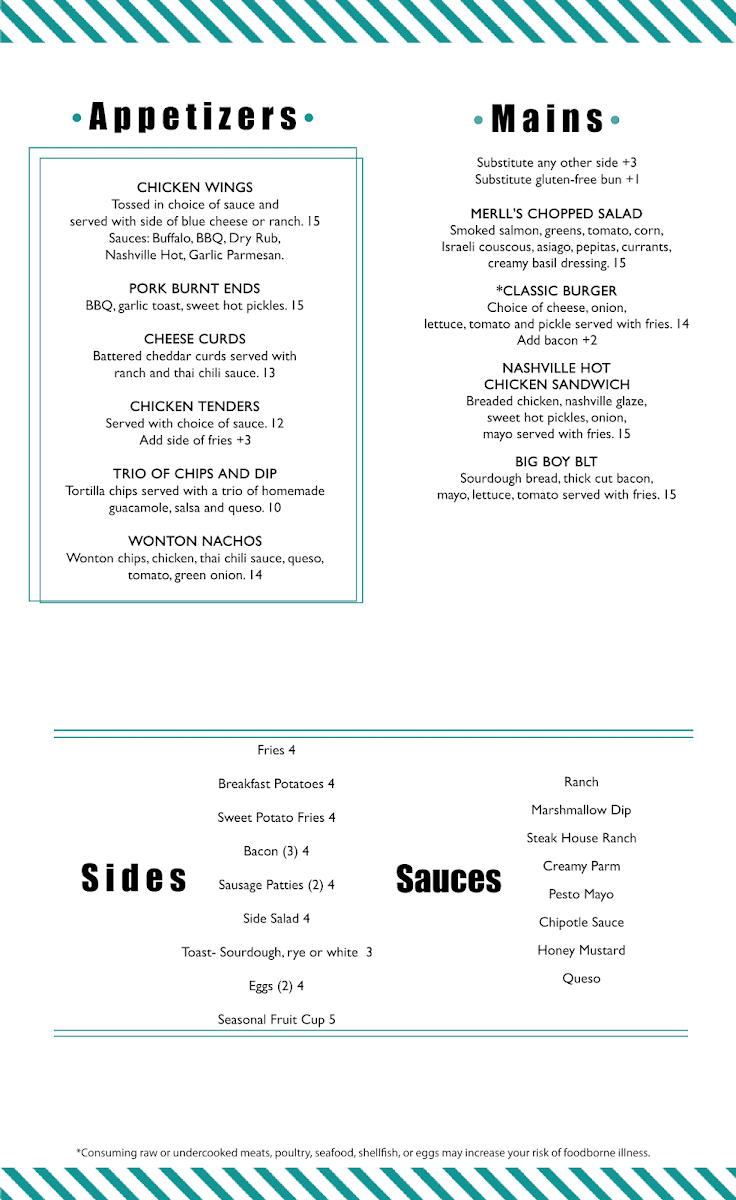 Don’t forget to satisfy your sweet tooth with desserts like the Salted Caramel Brownie and Lemon Mascarpone Cake, perfect for wrapping up your meal. With its warm ambiance, attentive service, and consistently delicious offerings, Merll's is not just a pub but a culinary experience waiting to be savored.
